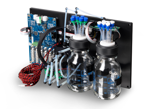 Each Ethernet networked GIS ink control board (ISC-IMB-I6) can control from 1 to 6 fluids/inks independently. Two or more boards can be connected for systems that require 7 – 12 fluids/inks and beyond.